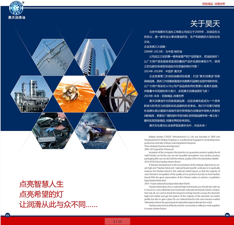 北京昊天潤(rùn)滑油第四代產(chǎn)品手冊(cè)設(shè)計(jì)制作完成,近期將正式服務(wù)于全國(guó)廣大用戶(hù)朋友!