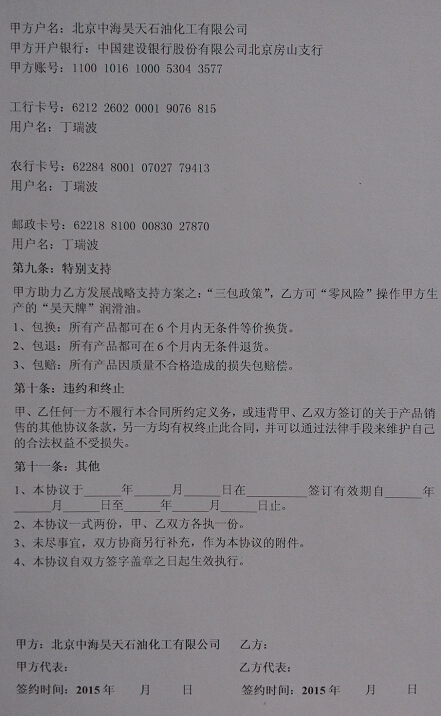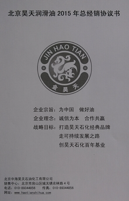 北京昊天潤(rùn)滑油2015年總經(jīng)銷協(xié)議書正式出臺(tái)
