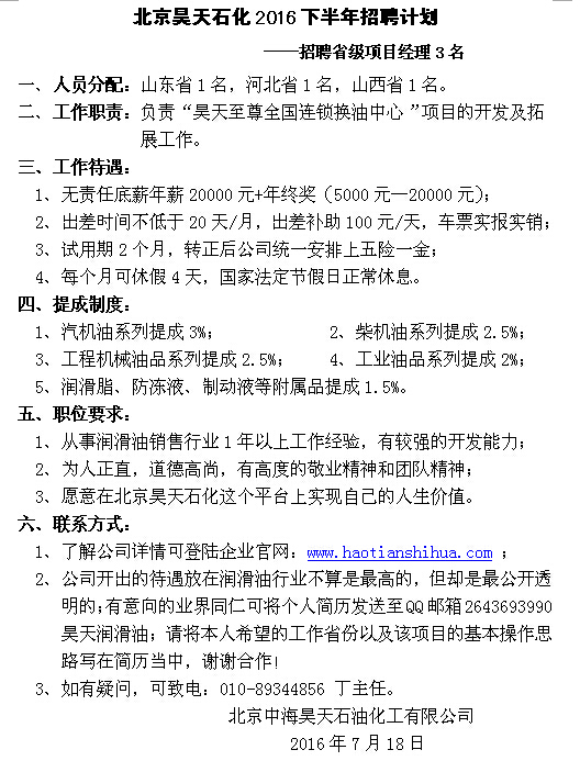 北京昊天石化2016年下半年招聘計(jì)劃正式啟動(dòng)